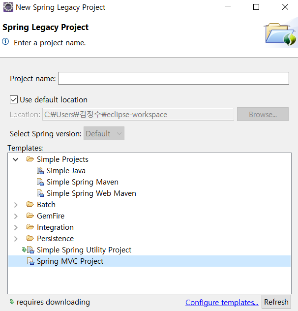 이클립스에서 marketplace에 있는 Spring Toolkit을 설치하면 간단한 Spring MVC 프로젝트를 바로 빌드할 수 있다.
