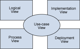 Logical view: 설계 모델 추상화, 기능적 요구사항. 클래스 다이어그램으로 표현.